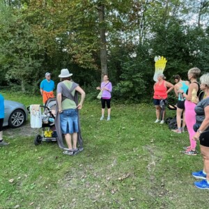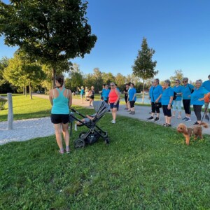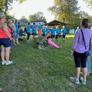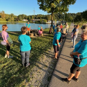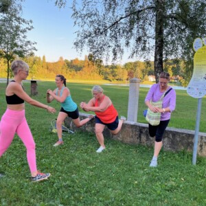 Fitness-Trainerin Kerstin Stopfer, die schon seit längerem Outdoor-Kurse an den Auseen hält, erklärte an jeder Station ausführlich die auf Füßchen-Tafeln übersichtlich dargestellten Übungen. Mittels QR-Codes auf den Tafeln können Schritteweg-Besucher die Übungen über anschauliche Youtube-Videos jederzeit aufrufen und nachmachen.