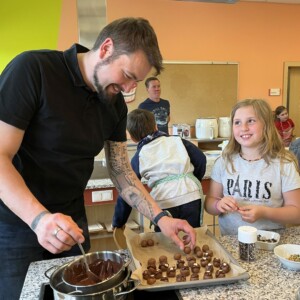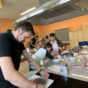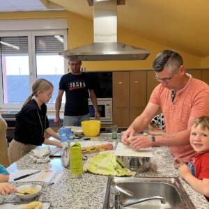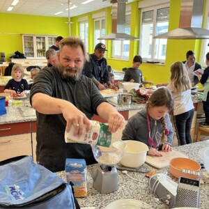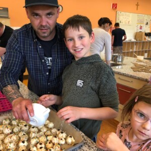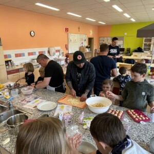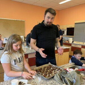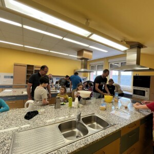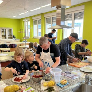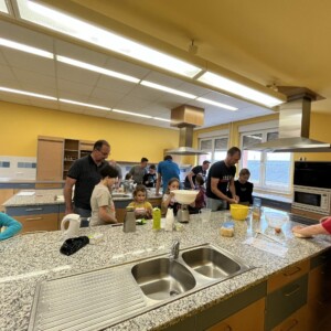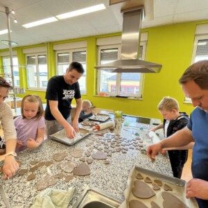 Am Freitag vor dem Muttertag fand in beiden Küchen der NMS Blindenmarkt, das „Backen mit Papa für die Mama“ statt. Die 15 Väter mit ihren insgesamt 26 Kindern waren mit großem Einsatz dabei, Teige zu kneten und Backwerk auszustechen sowie Herzen und Kuchenpralinen zu formen. Auch das Glasieren und Dekorieren fand mit viel Begeisterung reichlich Anklang. Zwischendurch konnte in Zeitfenstern am Basteltisch noch etwas zur festlichen Dekoration für den Muttertag vorbereitet werden.