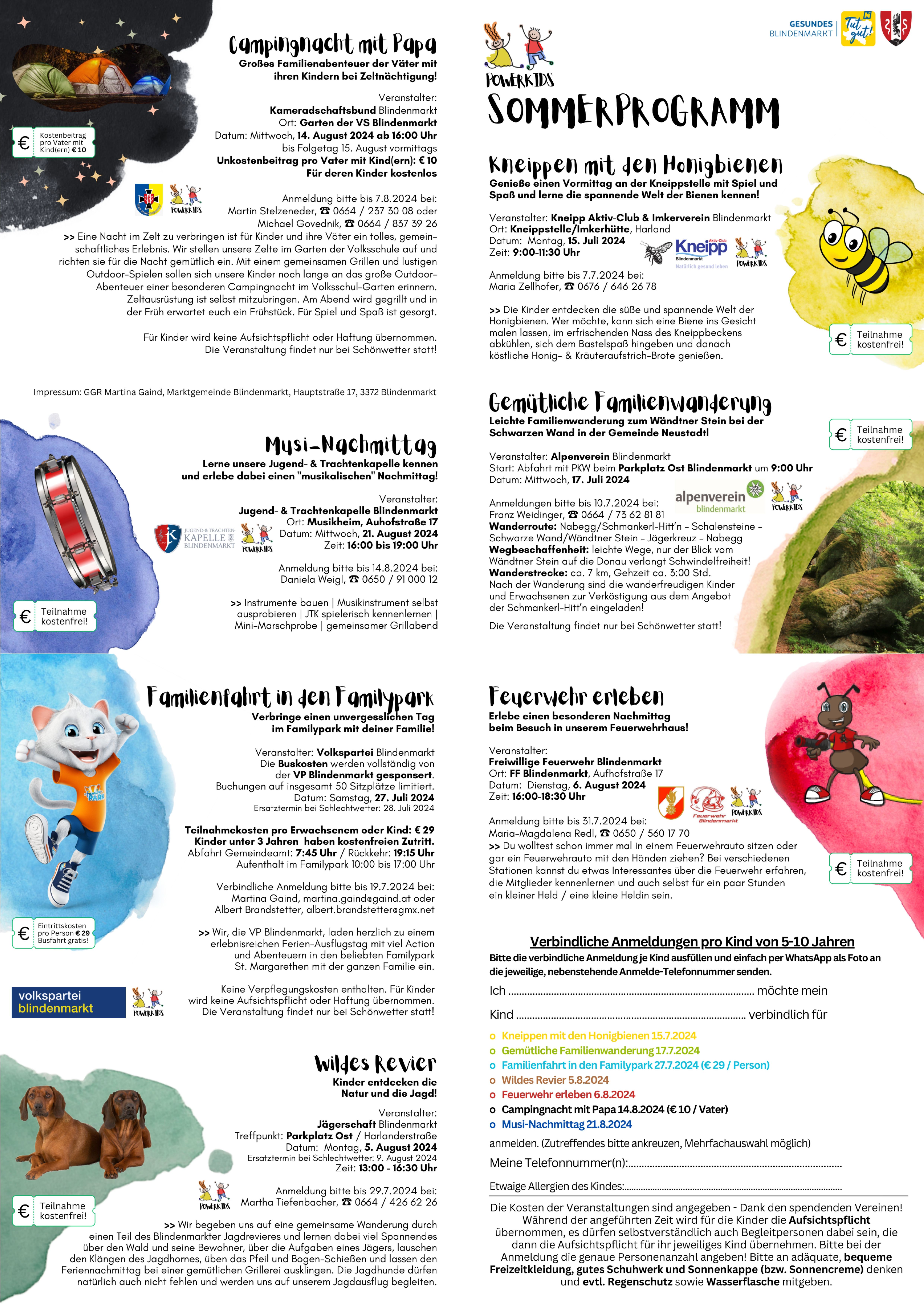 Angebot der Gesunden Gemeinde Blindenmarkt – dankenswerterweise in Zusammenarbeit mit zahlreichen Blindenmarkter Vereinen!